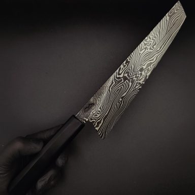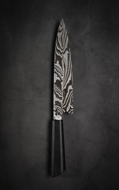 Nicht nur der sehr feinkörnige Stahl mit hohem Kohlenstoffgehalt und hoher Härte unterscheidet meine Klingen von industriell hergestellten Messer. Auch die sehr dünn ausgeschliffene Schneide und die extreme Schärfe sorgen für mehr Spaß beim Kochen.