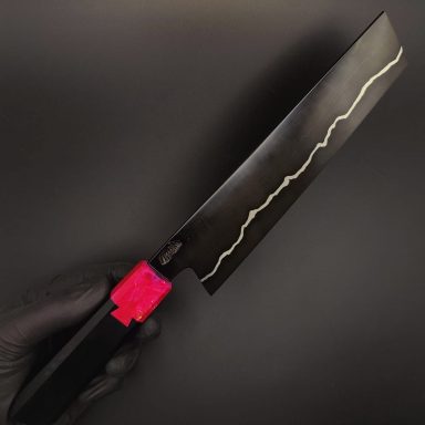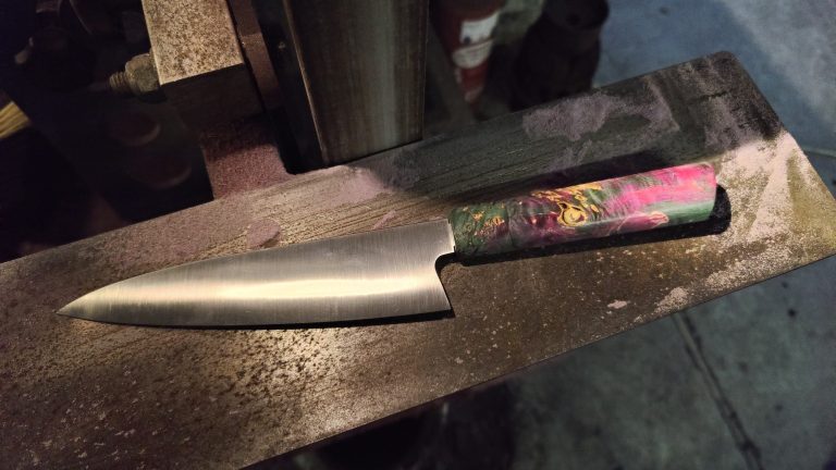 Bei allen ausgewählten Materialien achte ich sehr auf Langlebigkeit und Hygiene. Dazu gehört kleine Löcher / Spalte im Holz zu füllen, sodass keine Feuchtigkeit eindringen kann. Außerdem ist mein Griffholz stabilisiert, also mit Epoxidharz behandelt, was es unanfälliger macht.